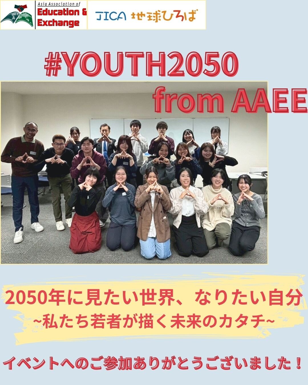 11月16日(日)にJICA地球ひろばにて、「YOUTH 2050 from AAEE 2050年に見たい世界、なりたい自分」を開催いたしました。